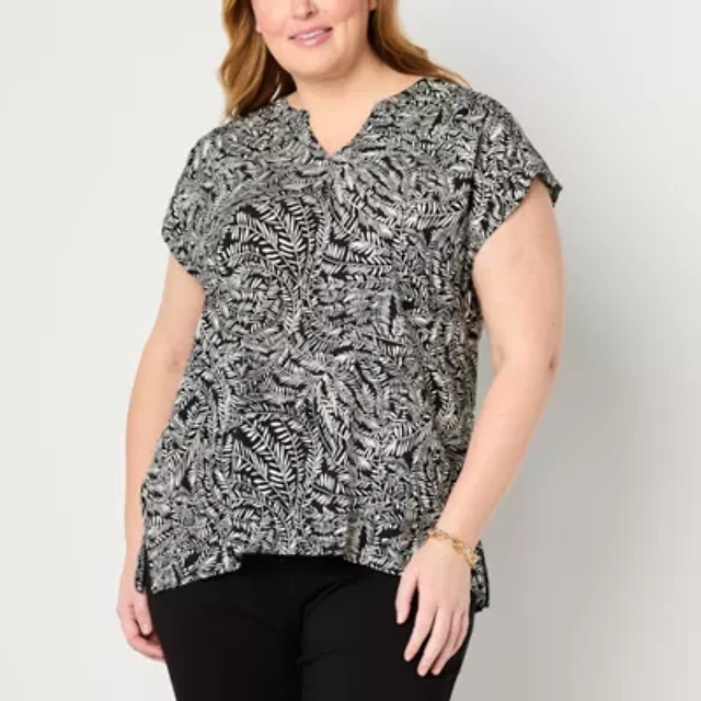 Liz Claiborne Plus Womens Split Crew Neck Short Sleeve Blouse