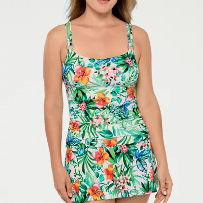 Liz Claiborne Womens Comfort Straps Lined Shirred Tropical Floral Tankini Swimsuit Top