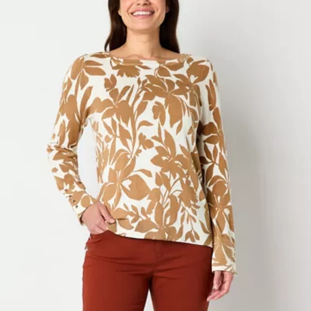 Liz Claiborne Womens Crew Neck Long Sleeve Floral Pullover Sweater