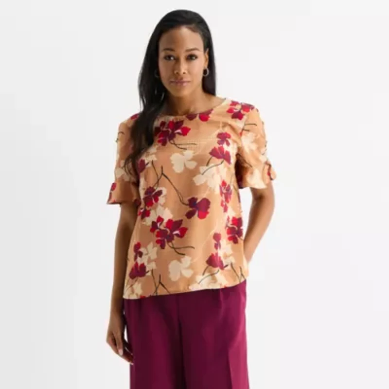 Liz Claiborne Womens Crew Neck Short Sleeve Blouse