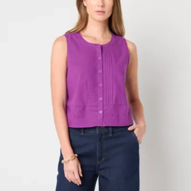 Liz Claiborne Womens Crew Neck Sleeveless Blouse