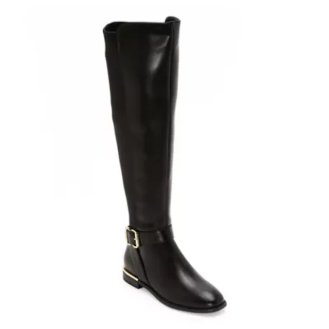 Liz Claiborne Womens Tarla Wide Calf Stacked Heel Riding Boots