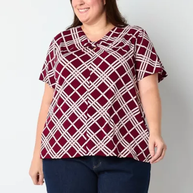 Liz Claiborne Womens Keyhole Neck Short Sleeve Plus Blouse