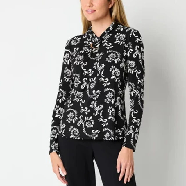 Liz Claiborne Womens Round Neck Long Sleeve Blouse