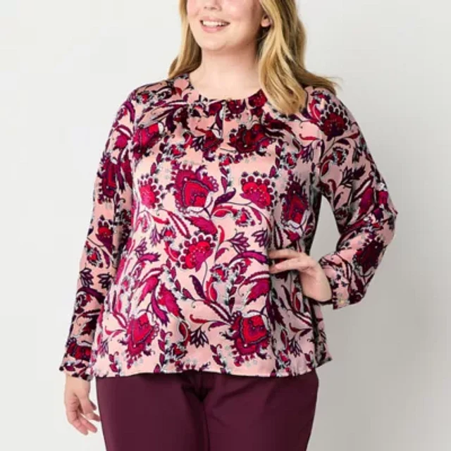 Liz Claiborne Womens Long Sleeve Plus Blouse