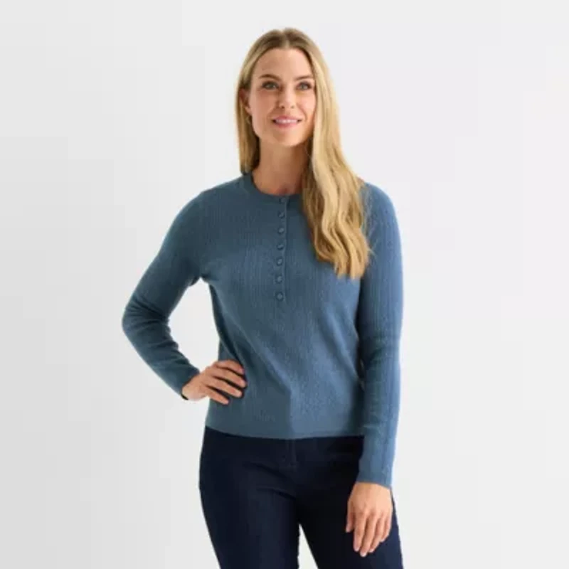 Liz Claiborne Womens Long Sleeve Regular Fit Henley Shirt