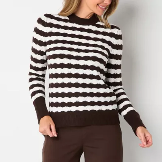 Liz Claiborne Womens Crew Neck Long Sleeve Striped Pullover Sweater