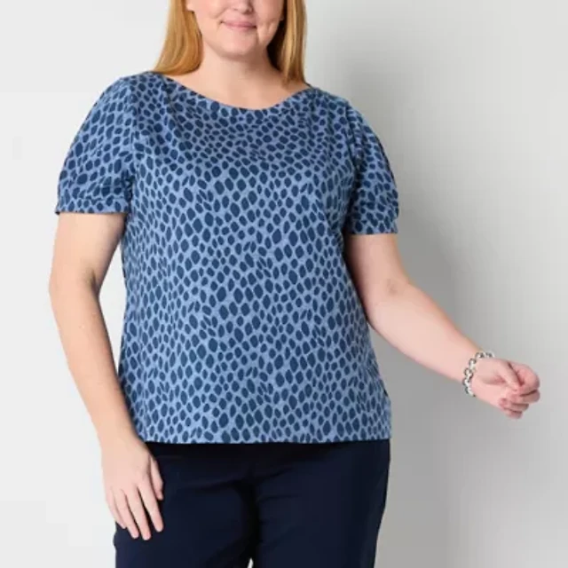 Liz Claiborne Womens Plus Boat Neck Short Sleeve Blouse