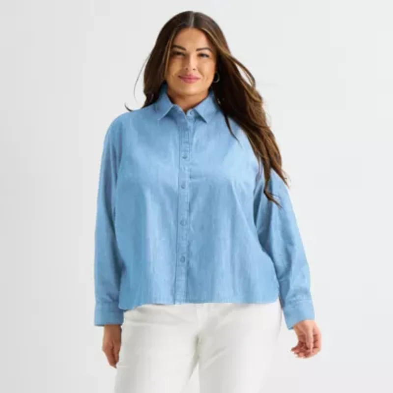 Liz Claiborne Womens Plus Fitted Long Sleeve Button-Down Shirt