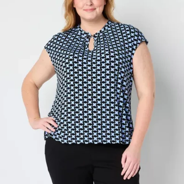 Liz Claiborne Womens Plus Keyhole Neck Short Sleeve Blouse