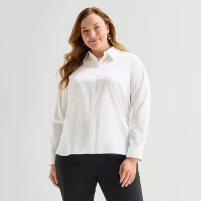 Liz Claiborne Womens Plus Long Sleeve Dress Shirt