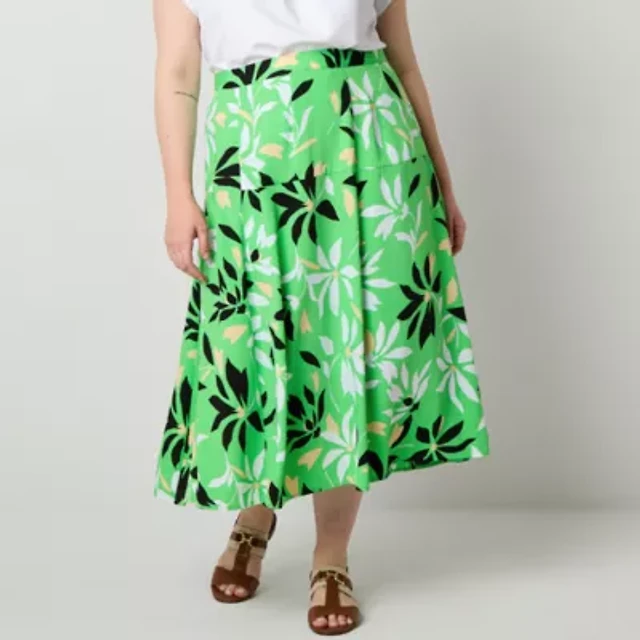 Liz Claiborne Womens Plus Midi Full Skirt
