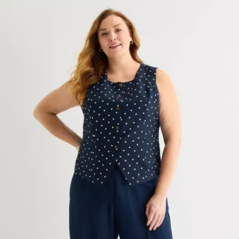 Liz Claiborne Womens Plus Round Neck Sleeveless Vest