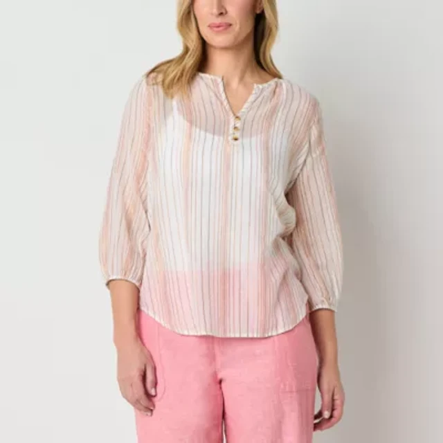 Liz Claiborne Womens Plus Split Crew Neck 3/4 Sleeve Blouse