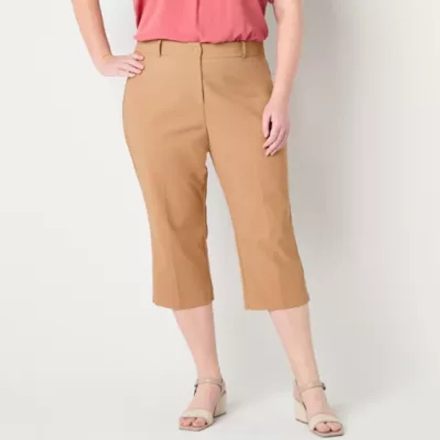 Liz Claiborne Womens Plus Stretch Fabric Straight Mid Rise Capri Pant