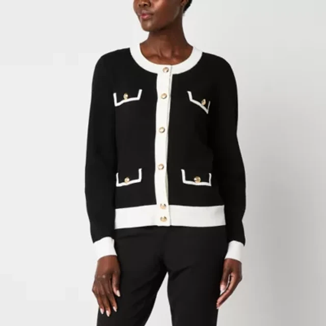 Liz Claiborne Womens Round Neck Long Sleeve Button Cardigan