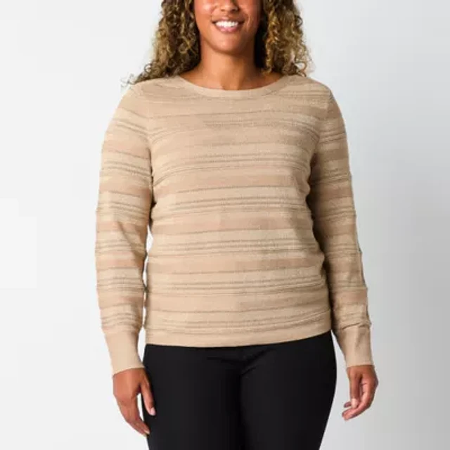 Liz Claiborne Plus Womens Round Neck Long Sleeve Pullover Sweater