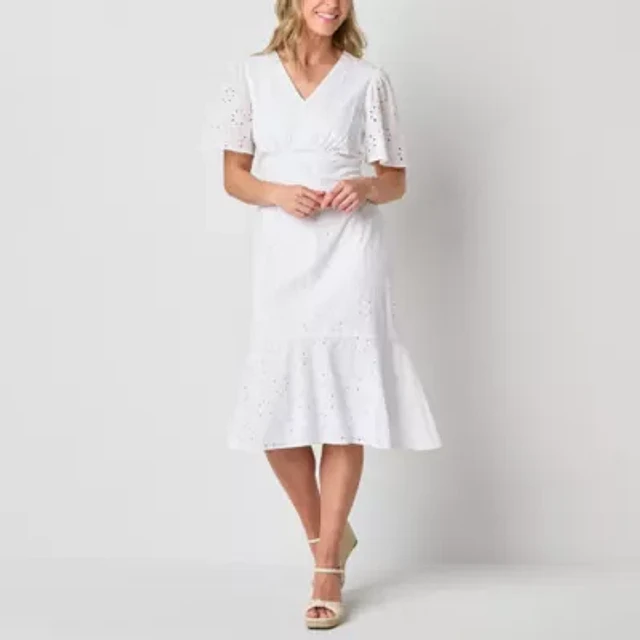Liz Claiborne Womens Short Sleeve Midi Empire Waist Dress
