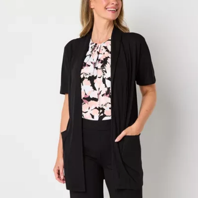 Liz Claiborne Womens Short Sleeve Open Front Cardigan