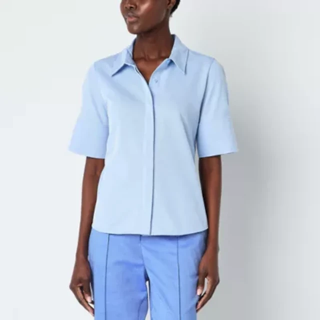 Liz Claiborne Womens Short Sleeve Regular Fit Button-Down Shirt
