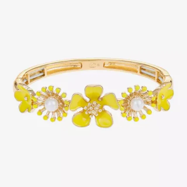 Liz Claiborne Womens Simulated Pearl Flower Stretch Bracelet