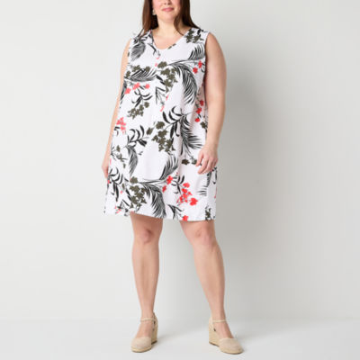 Liz Claiborne Womens Plus Sleeveless Midi Floral A-Line Dress