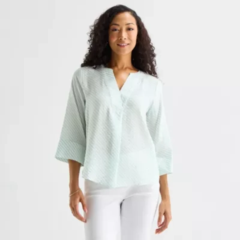 Liz Claiborne Womens Split Crew Neck 3/4 Sleeve Tunic Top