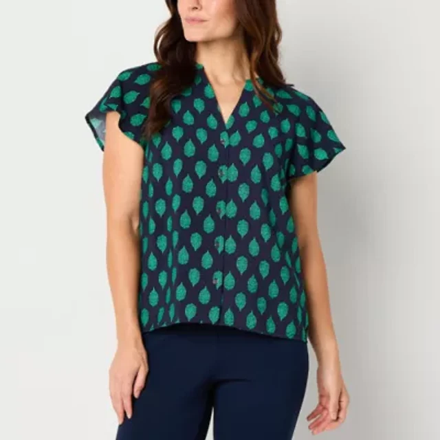 Liz Claiborne Womens Split Crew Neck Short Sleeve Blouse