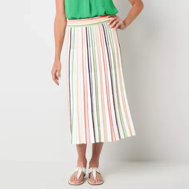 Liz Claiborne Womens Tall Mid Rise Midi Pleated Skirt