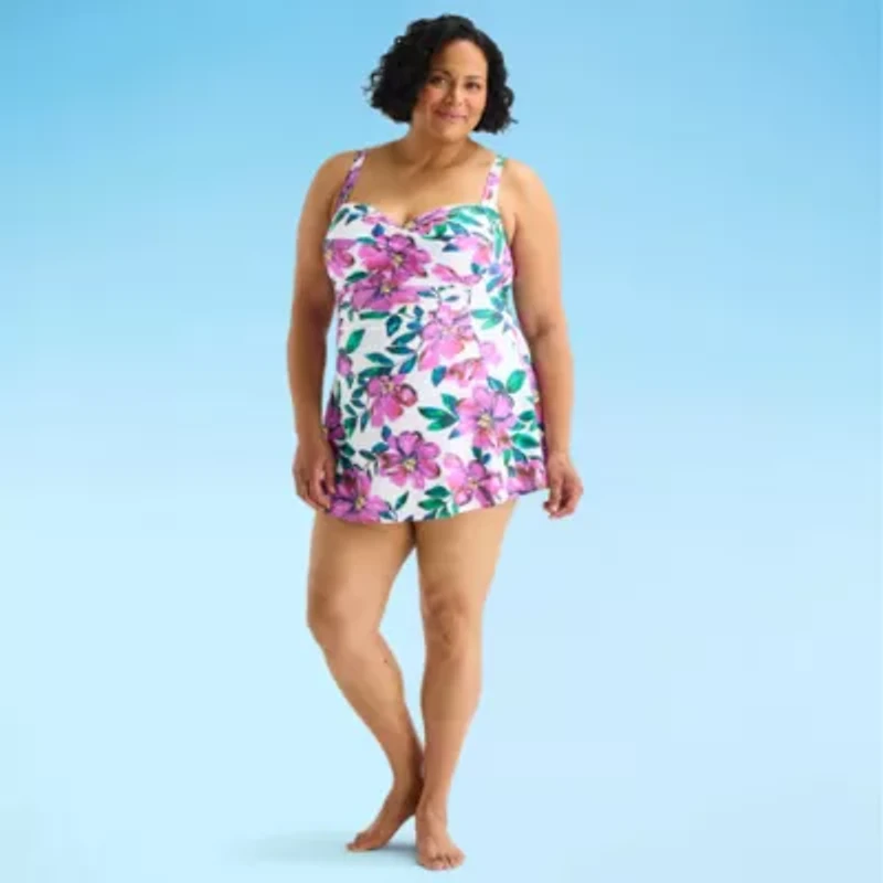 Liz Claiborne Womens Tropical Floral Plus Swim Dress