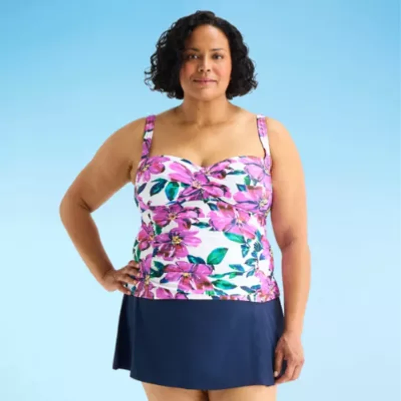 Liz Claiborne Womens Tropical Floral Plus Tankini Swimsuit Top