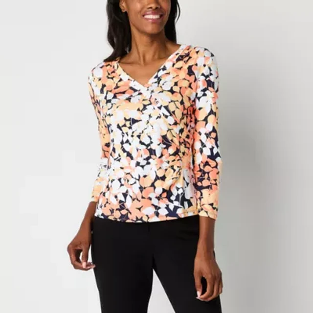 Liz Claiborne Womens V Neck 3/4 Sleeve Wrap Shirt