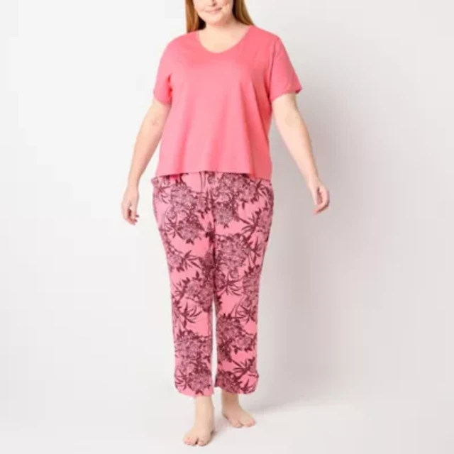 Liz Claiborne Womens V-Neck Short Sleeve 2-pc. Plus Pajama Sets