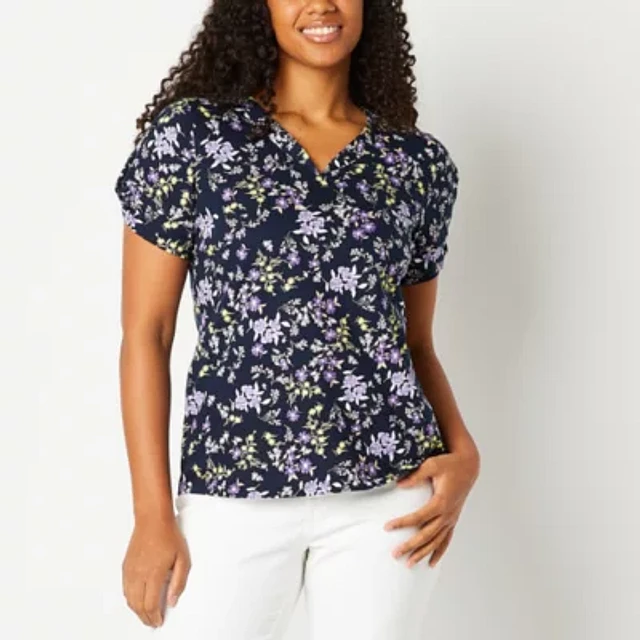 Liz Claiborne Womens V Neck Short Sleeve Blouse