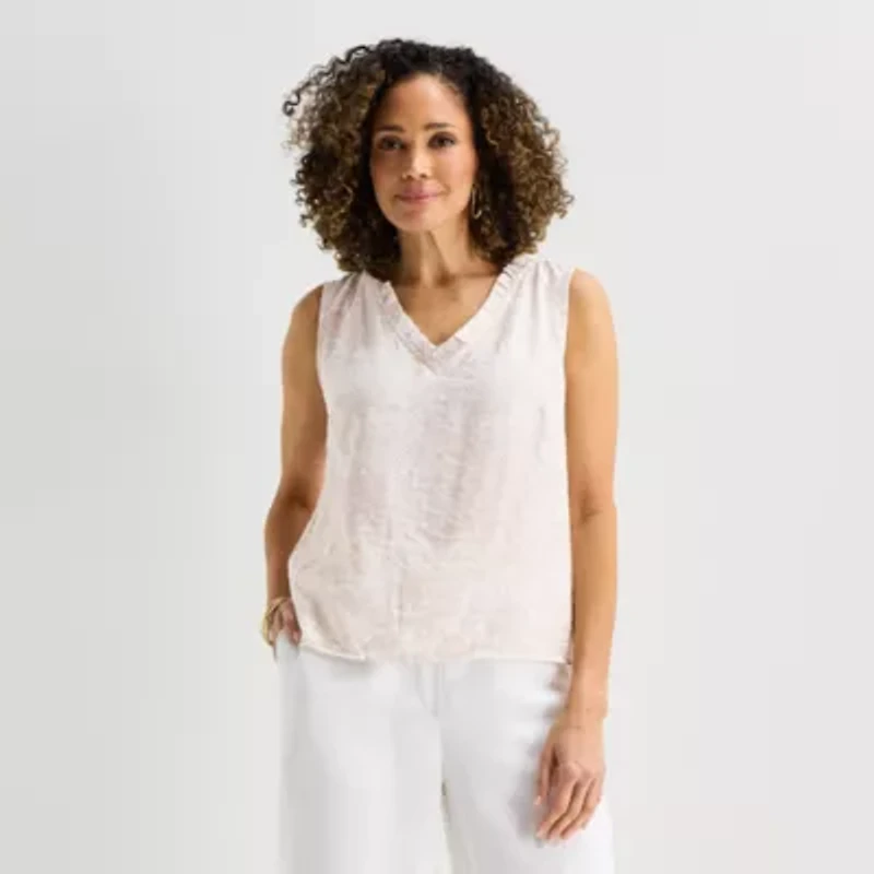 Liz Claiborne Womens V Neck Sleeveless Blouse