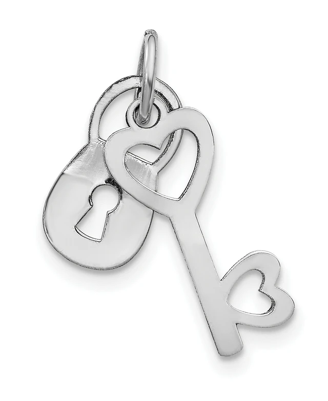 Key and Heart Shaped Lock Pendant in 14k Yellow Gold