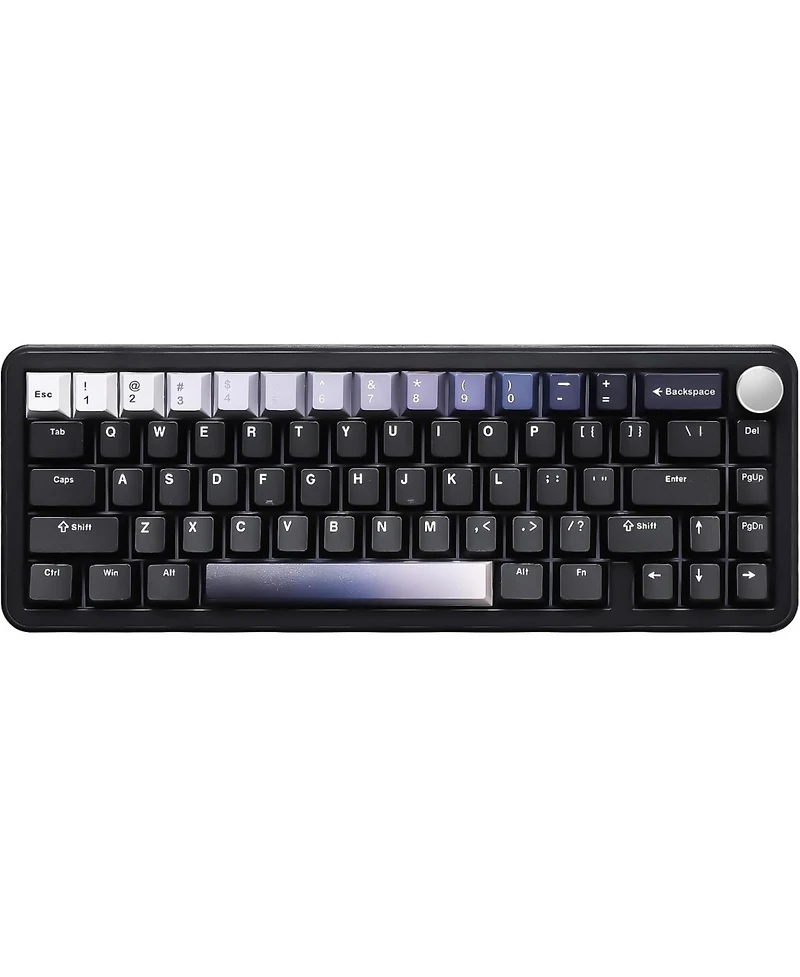 The B68 is a versatile tri-mode wireless mechanical keyboard (Bluetooth/2.4G/wired) with 5000mAh battery for all-day use on Windows/MacOS. Its hot-swappable design and pre-lubed linear switches deliver a smooth, customizable typing feel, while the 5-layer gasket mount and sound-dampening foams ensure a creamy, quiet keystroke. Stand out with Rgb backlighting, rainbow Pbt keycaps, and a multifunction knob for volume/Rgb control—all packed into a 65% compact layout perfect for productivity, gaming, and Diy enthusiasts.