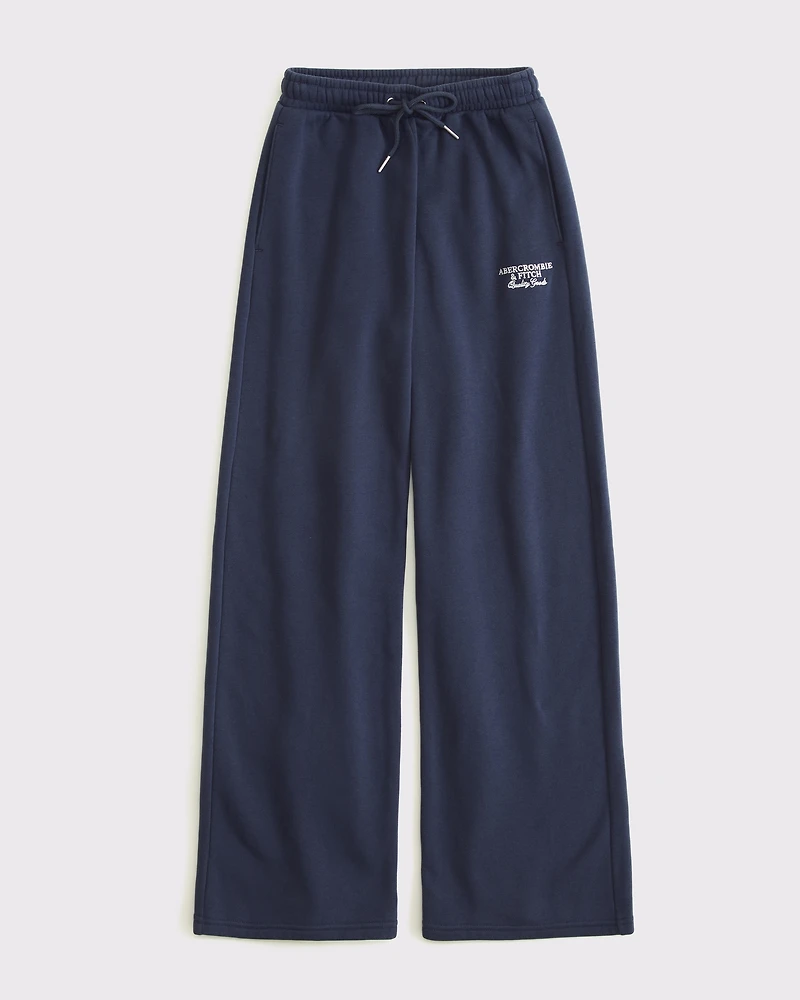High rise sweatpants in our Soft A&F Max fleece fabric, featuring our wide-leg silhouette, an elasticated waistband for a secure fit, exterior drawcords, embroidered logo detail and pockets.