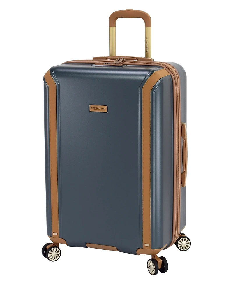 The London Fog regent 27"" expandable spinner is made in a durable polycarbonate alloy hard side construction with a leather inlay trim. There are 8 recessed spinner wheels that make traveling smooth. Interior has zippered lid compartment, mesh pocket and mesh packing cradle to keep your belongings organized. There are Tpr (thermoplastic rubber) cushion grips on top and side carry handles and a bottom grip handle on all sizes. Spinners expand 2"" for additional packing capacity. Industrial zippers are self repairing.