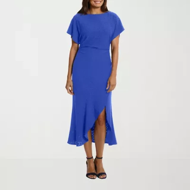 London Times Womens Short Sleeve Midi Fit + Flare Dress