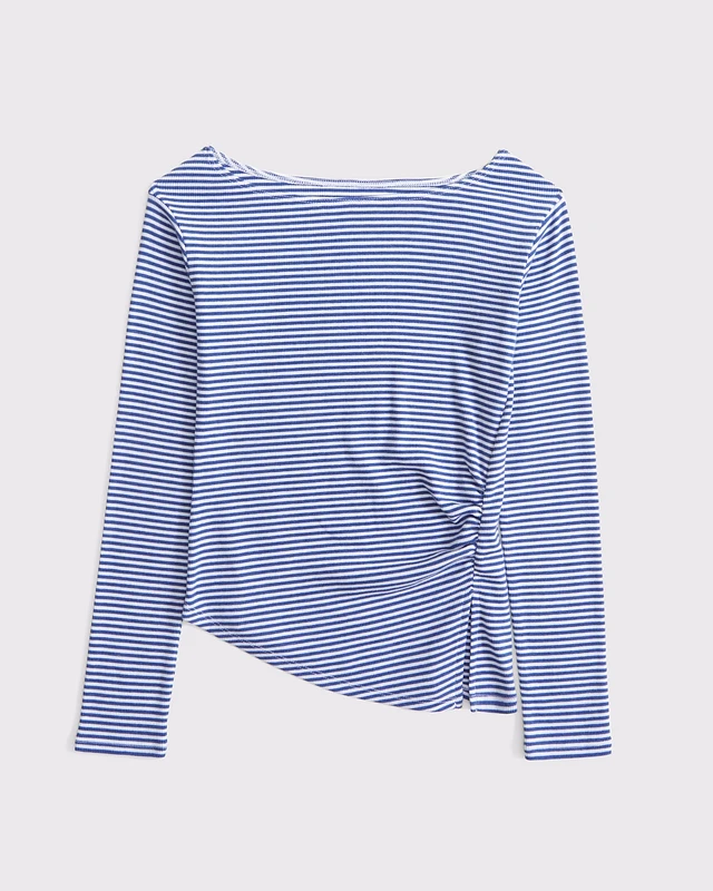 Long-Sleeve Mesh Ruched Asymmetrical Top