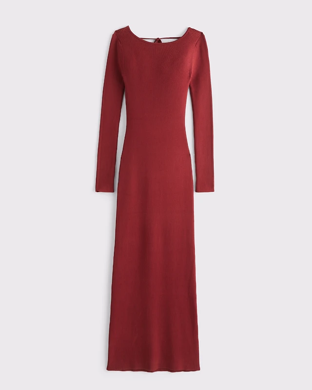 Long-Sleeve V-Neck Maxi Sweater Dress