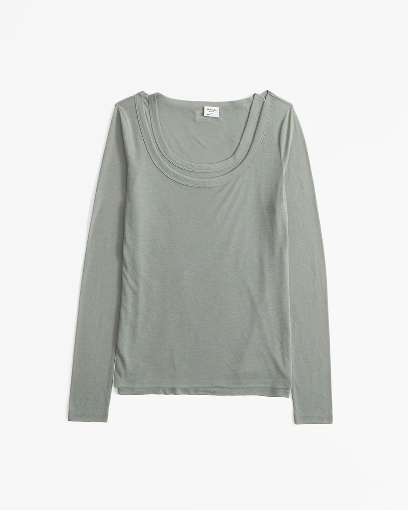 Long-Sleeve Balletic Scoopneck Top