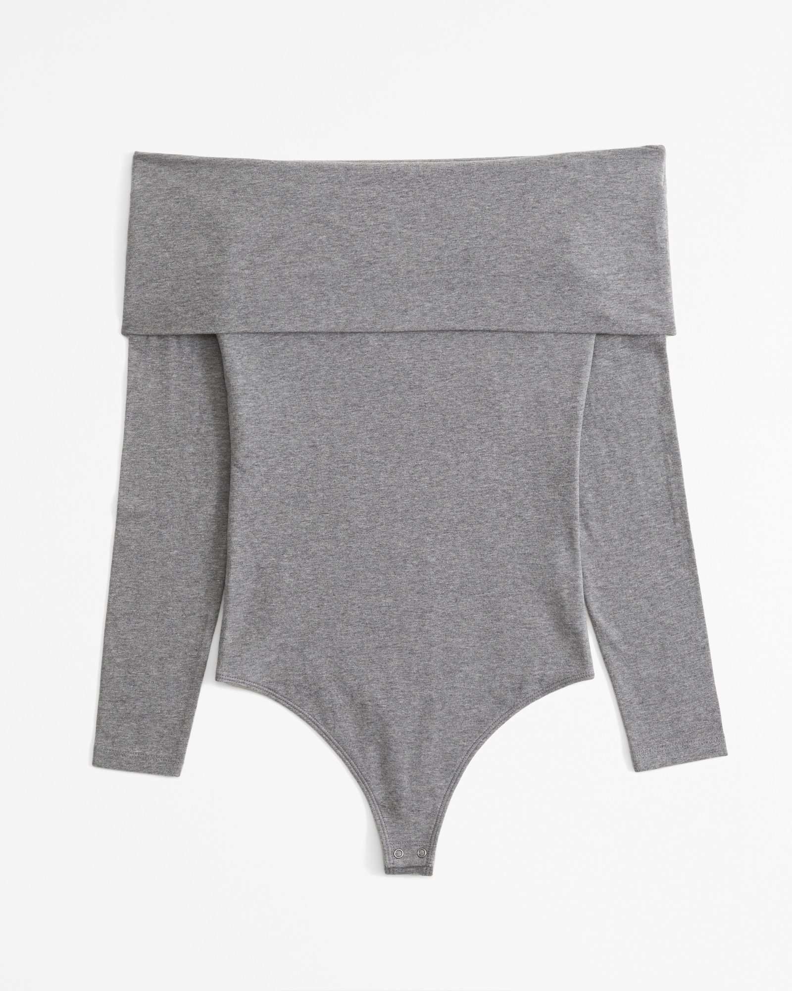 Long-Sleeve Cotton-Blend Seamless Fabric Off-The-Shoulder Bodysuit