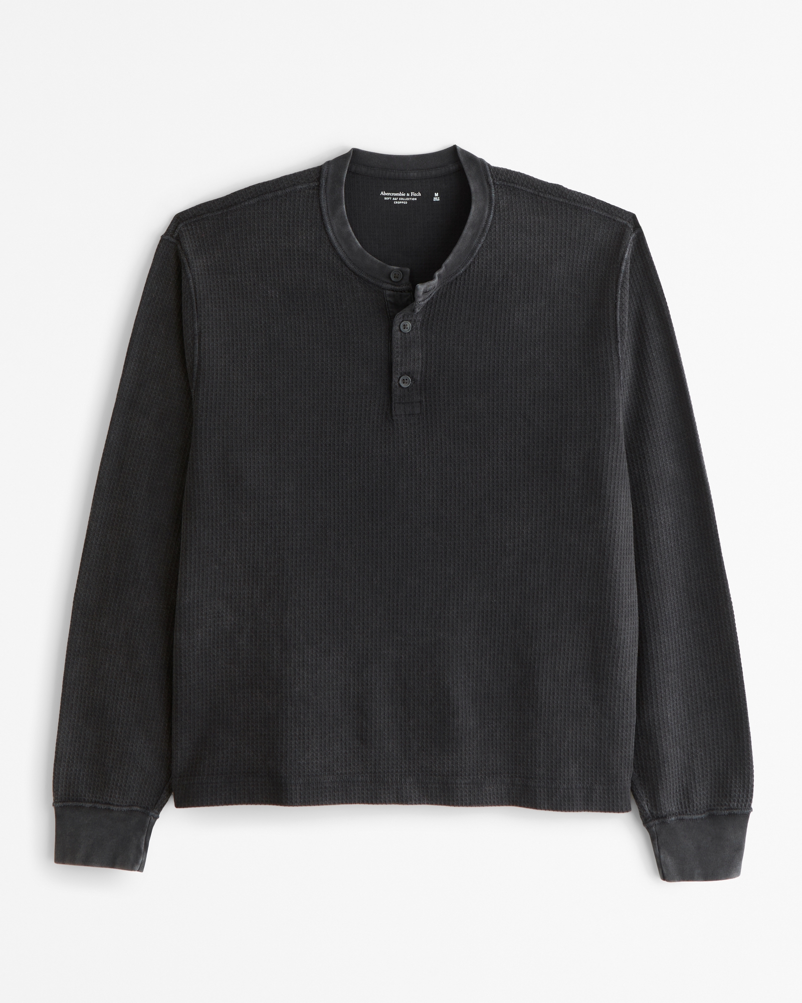 Long-Sleeve Grid Waffle Cropped Henley