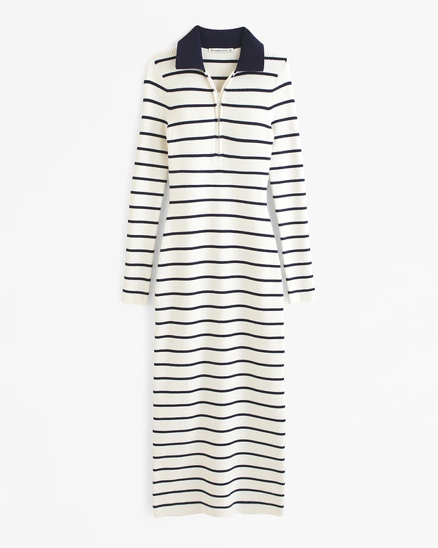 Long-Sleeve Half-Zip Maxi Sweater Dress