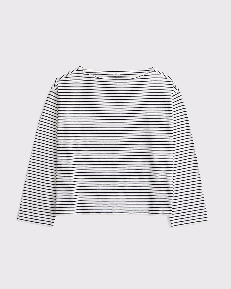 Slim-fitting long-sleeve tee in our heavyweight jersey fabric and tuckable length, featuring on-trend slash neckline and wide sleeves.