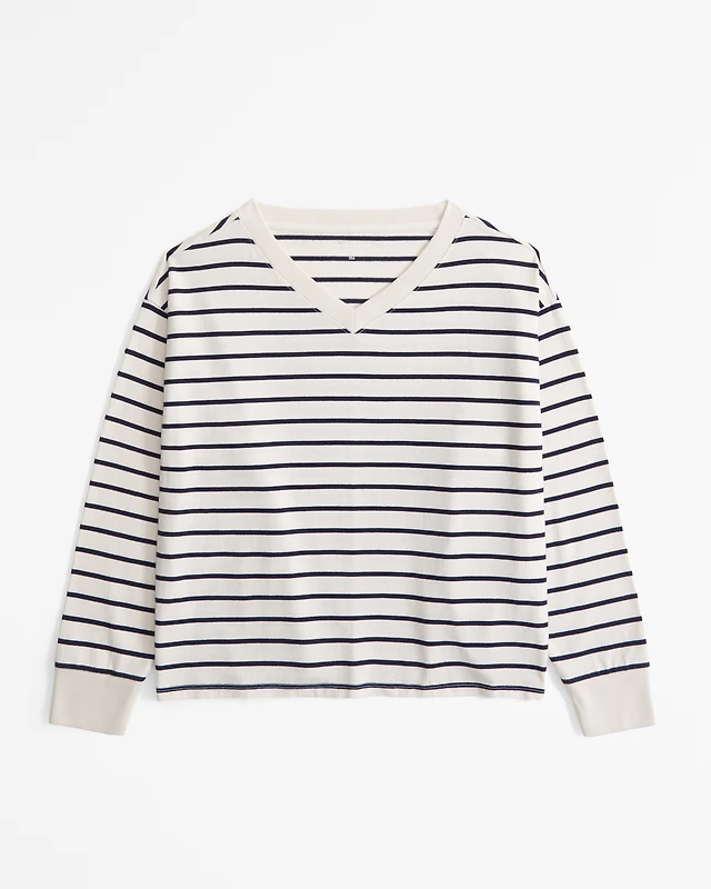 Long-Sleeve Jersey Oversized V-Neck Tee