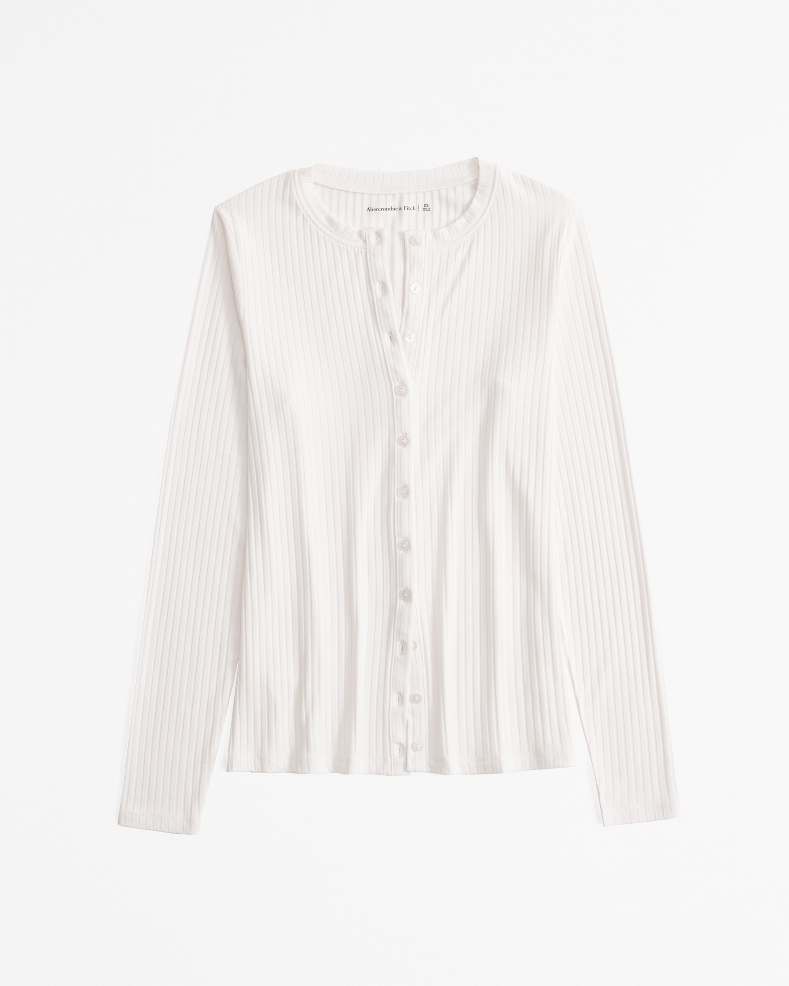 Long-Sleeve Cozy Lounge Knit Button-Through Top