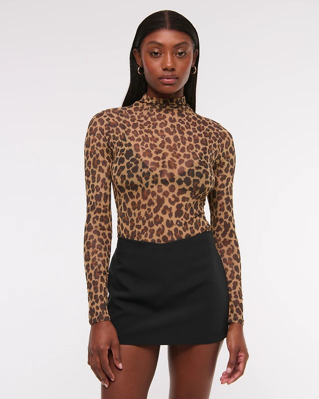 Mesh Mock Neck Long Sleeve Top